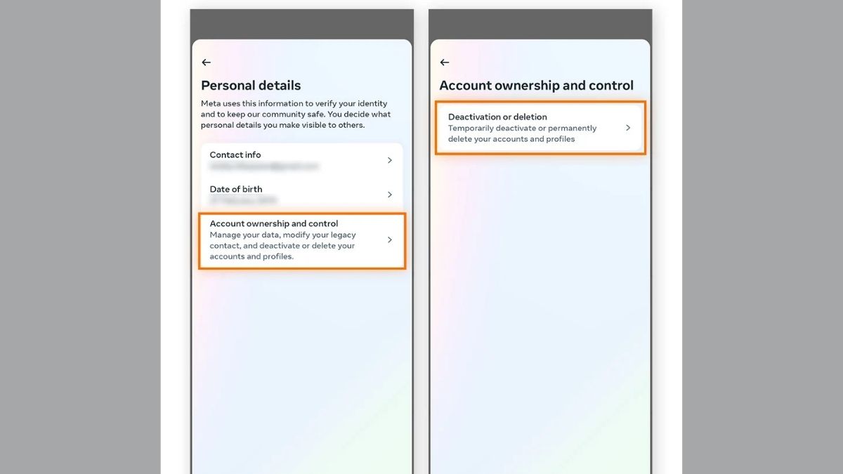 - Tap Account ownership and control, then select Deactivation or deletion.